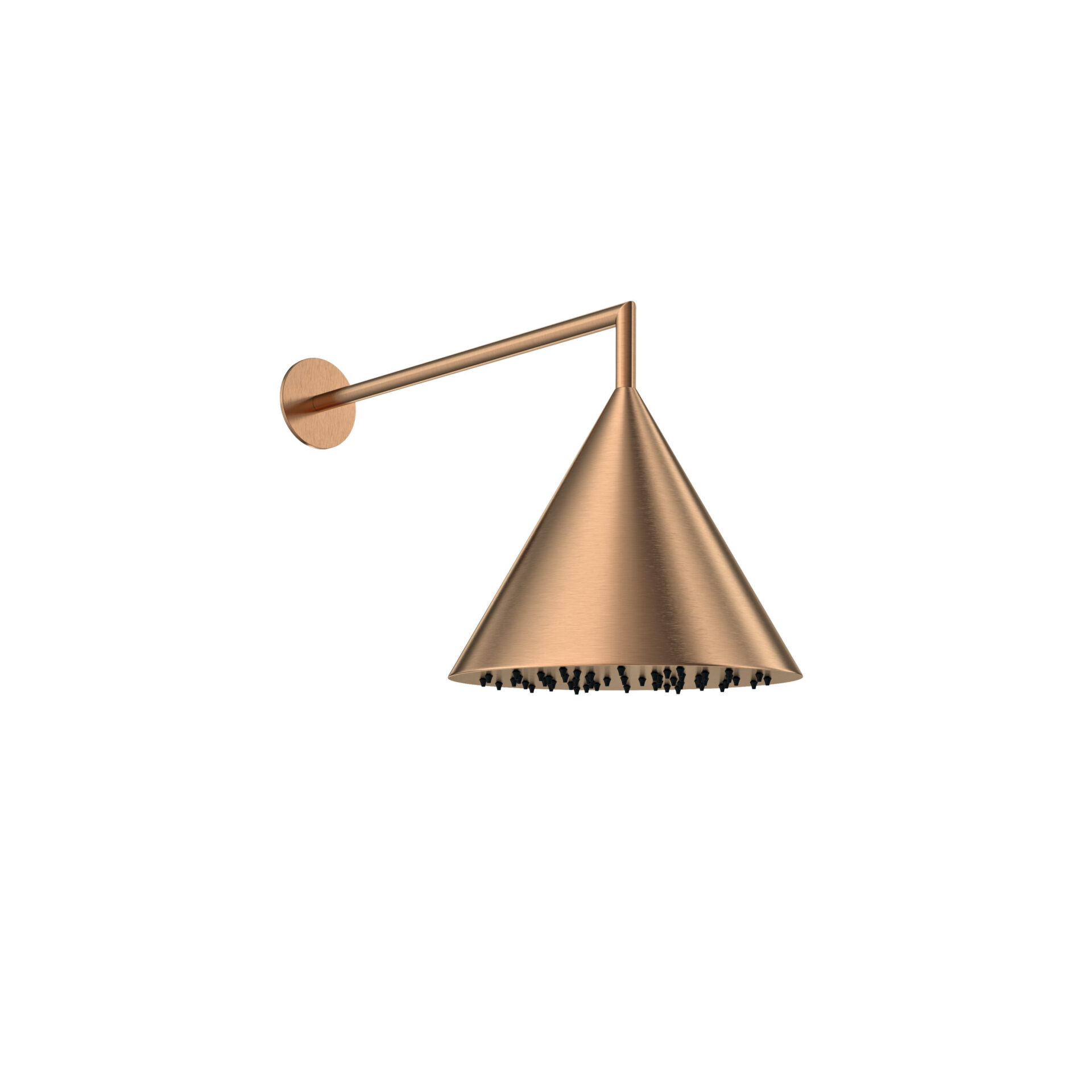 El diseño de Artemisa destaca por su forma cónica estilizada, que aporta una estética moderna y limpia al baño. Este diseño se complementa con un brazo a pared de solo 6 mm de diámetro, lo que potencia su ligereza visual sin comprometer su resistencia. Además, cuenta con una amplia salida lluvia de 20 cm de diámetro, que garantiza una cobertura generosa para un confort máximo durante la ducha.