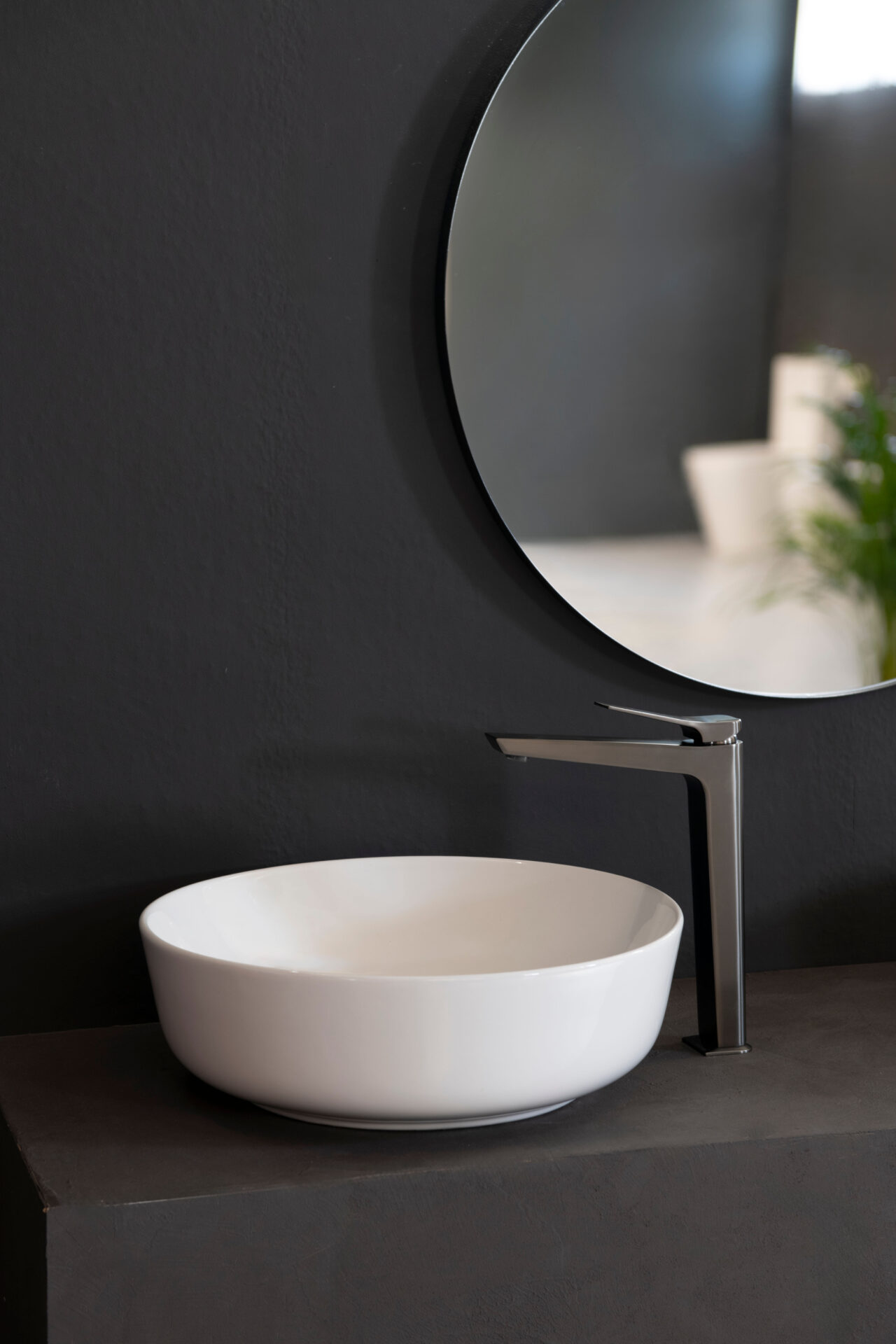 Fotos: Monomandos de lavabo estándar y caño alto, de la colección Prisma de ramonsoler., en acabado grafito.