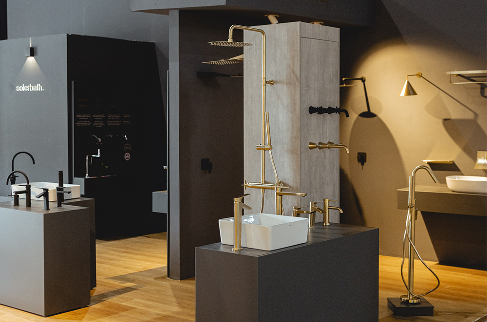 Proyecto Salón de Aguas (2006) Baño de lujo para Ramón Soler Este proyecto, realizado para Ramón Soler, fabricante de griferías, nace de un encargo muy concreto: diseñar un baño de lujo capaz de combinar materiales sofisticados con otros más sencillos, logrando un resultado equilibrado, atemporal y sereno. Zona de duchas: microcemento y piezas joya La zona de duchas se concibe como un único volumen continuo revestido en