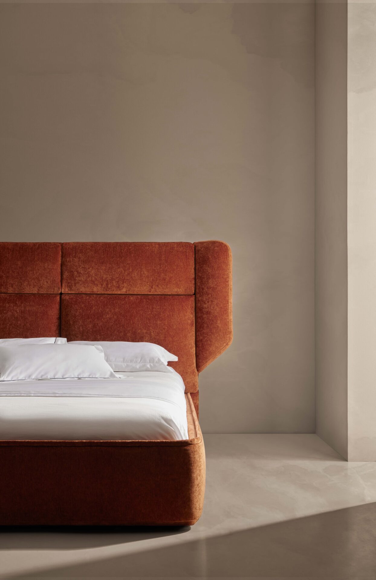En esta ocasión, Senttix pone el foco en el conjunto formado por el cabecero Flow y la cama abatible Band, dos modelos que ejemplifican a la perfección la alianza entre confort escultórico y practicidad minimalista.