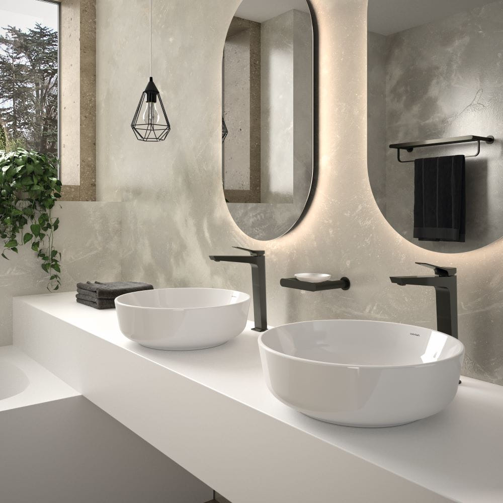 El caño alto de Prisma no solo mejora la funcionalidad al dejar más espacio entre el grifo y el lavabo, sino que también favorece una experiencia más cómoda e intuitiva. Esta configuración se adapta a las nuevas formas de entender el baño como un entorno de bienestar, combinando usabilidad, diseño y una cuidada proporción visual.