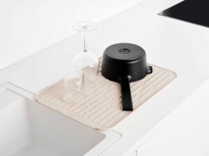 The dish drainers in the collection, available in different formats, have been designed to adapt to different spaces and volumes of dishes, favouring efficient and orderly drying. The dish drying mats, both in silicone and microfibre, complete this function with flexible, absorbent and easy-to-store solutions.