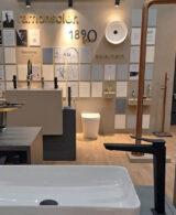 Il concept dello stand rispecchia l’identità visiva del brand attraverso le finiture in grigio antracite e grigio minerale, colori aziendali che trasmettono sobrietà e modernità. La proposta cerca di offrire ai visitatori un’esperienza completa intorno all’innovazione nella rubinetteria e nelle soluzioni per bagni e cucine.