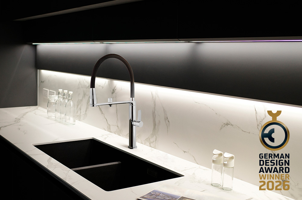 Le mitigeur de cuisine avec filtre intégré et retour magnétique séduit le jury par sa combinaison de design, d’ergonomie et de durabilité. Le mitigeur de cuisine ramonsoler Pure Water a été récompensé par le German Design Award 2026, dans la catégorie Excellent Product Design. Le jury a apprécié son esthétique minimaliste, son expérience utilisateur avancée et sa contribution à une consommation responsable de