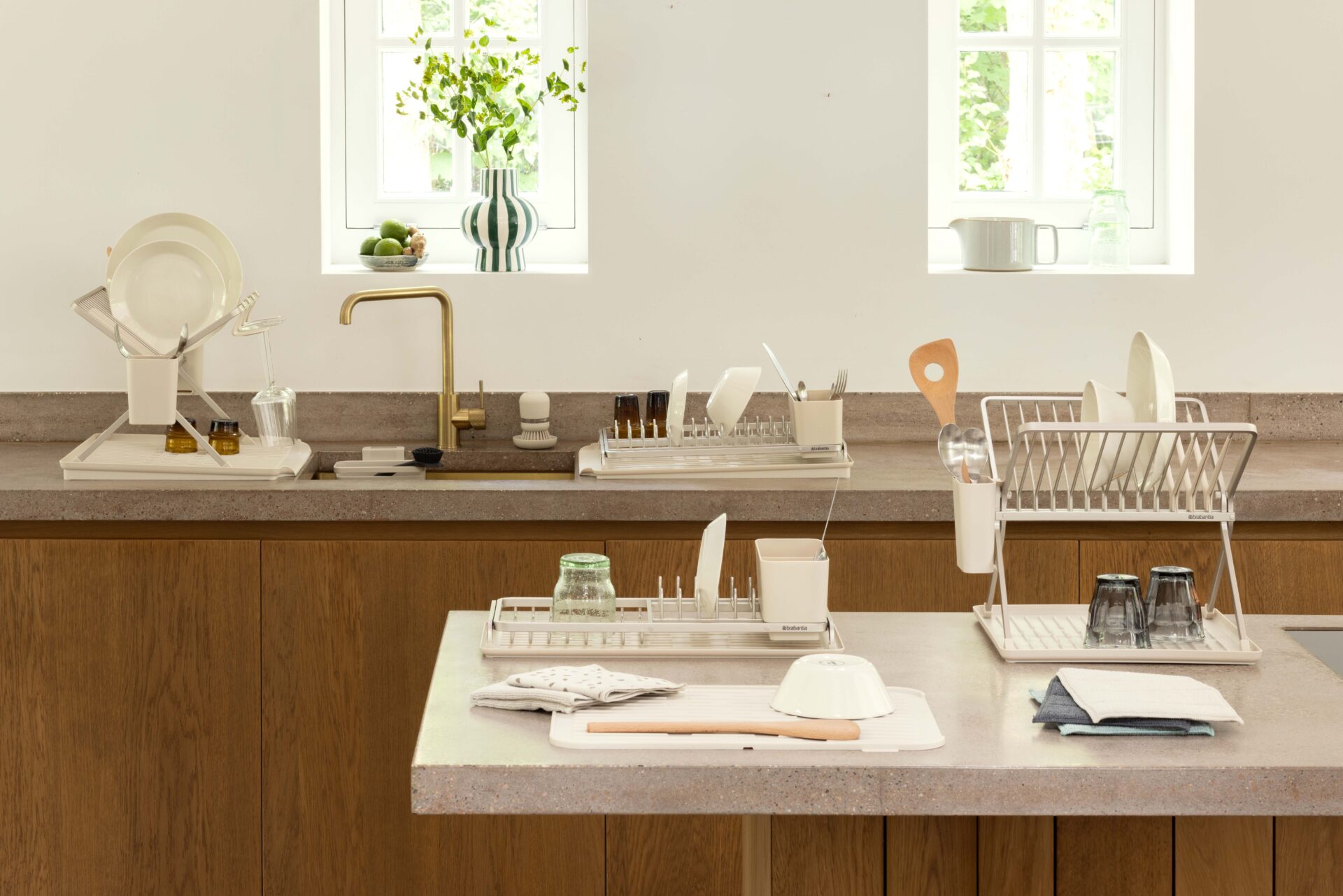 A touch of calm and style in the kitchen The sink area also deserves design, order and harmony. Brabantia presents the Sink Side collection in the Soft Beige finish, a neutral, warm and sophisticated tone that brings visual serenity to the kitchen and turns daily routines into more pleasant moments. Along with this new color, the collection is still available in Dark Grey,